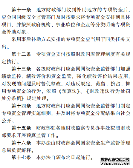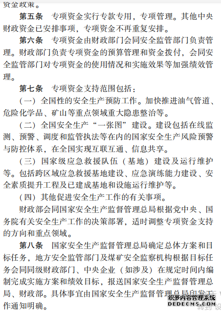 安全生產預防及應急專項 資金績效管理暫行辦法