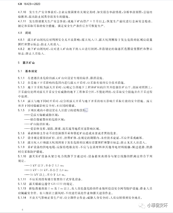 GB16423-2020《金屬非金屬礦山安全規(guī)程》,2021年9月1日起實(shí)施!