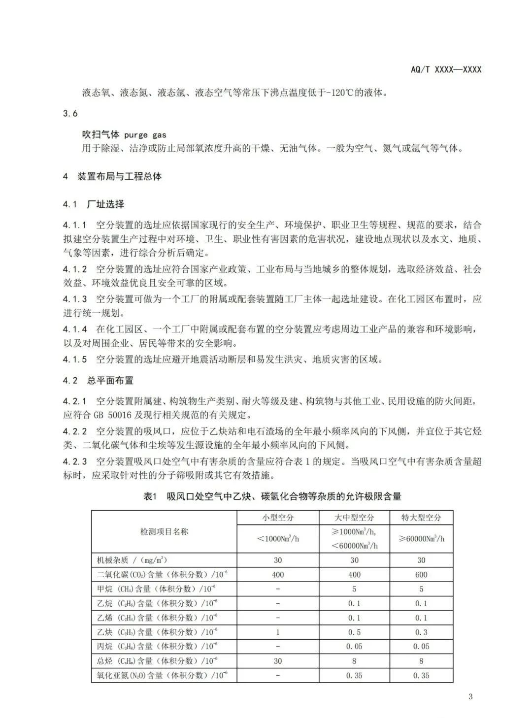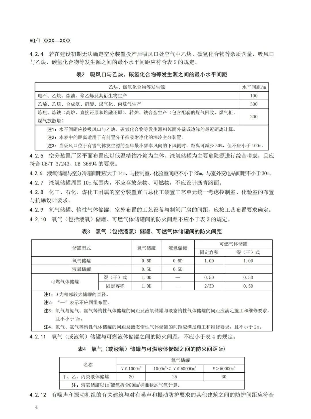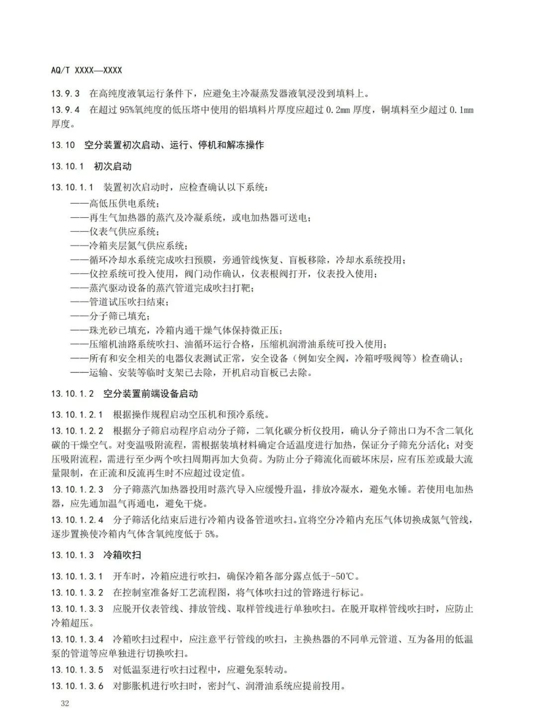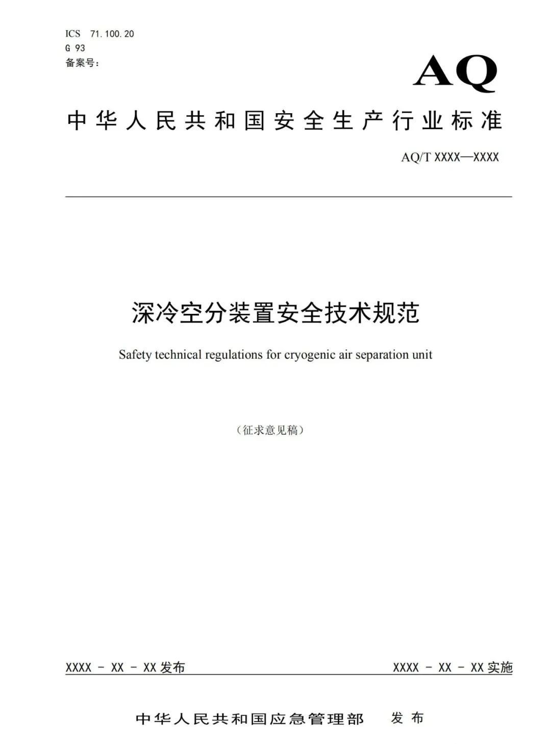 12月15日,國家應急管理部發(fā)布了關(guān)于《深冷空分裝置安全技術(shù)規(guī)范》(征求意見稿)等兩項標準征求意見。此次公開征求意見時間為2020年12月10日至2021年2月10日。本標準規(guī)定了深冷空分裝置的總體布局、吸入空氣質(zhì)量控制、壓縮機、膨脹機、低溫泵、空分冷箱和精餾系統(tǒng)、產(chǎn)品儲運、稀有氣體裝置、控制系統(tǒng)、安全操作運行、人員管理與事故應急處置等內(nèi)容的要求。本標準適用于以冶金、有色、化工、石化、煤化工、電子等領(lǐng)域采用深冷空分裝置制取氧、氮、氬(包含:氦、氖、氪、氙稀有氣體)等空氣產(chǎn)品的企業(yè)。附件:深冷空分裝置安全技術(shù)規(guī)范(征求意見稿)