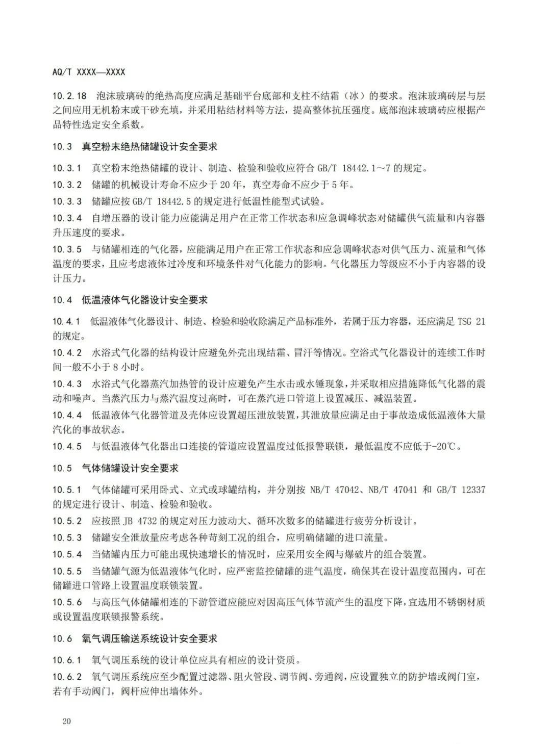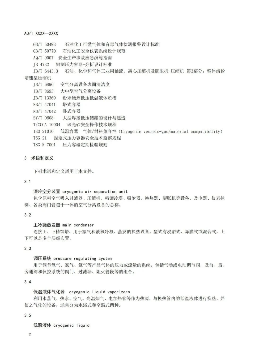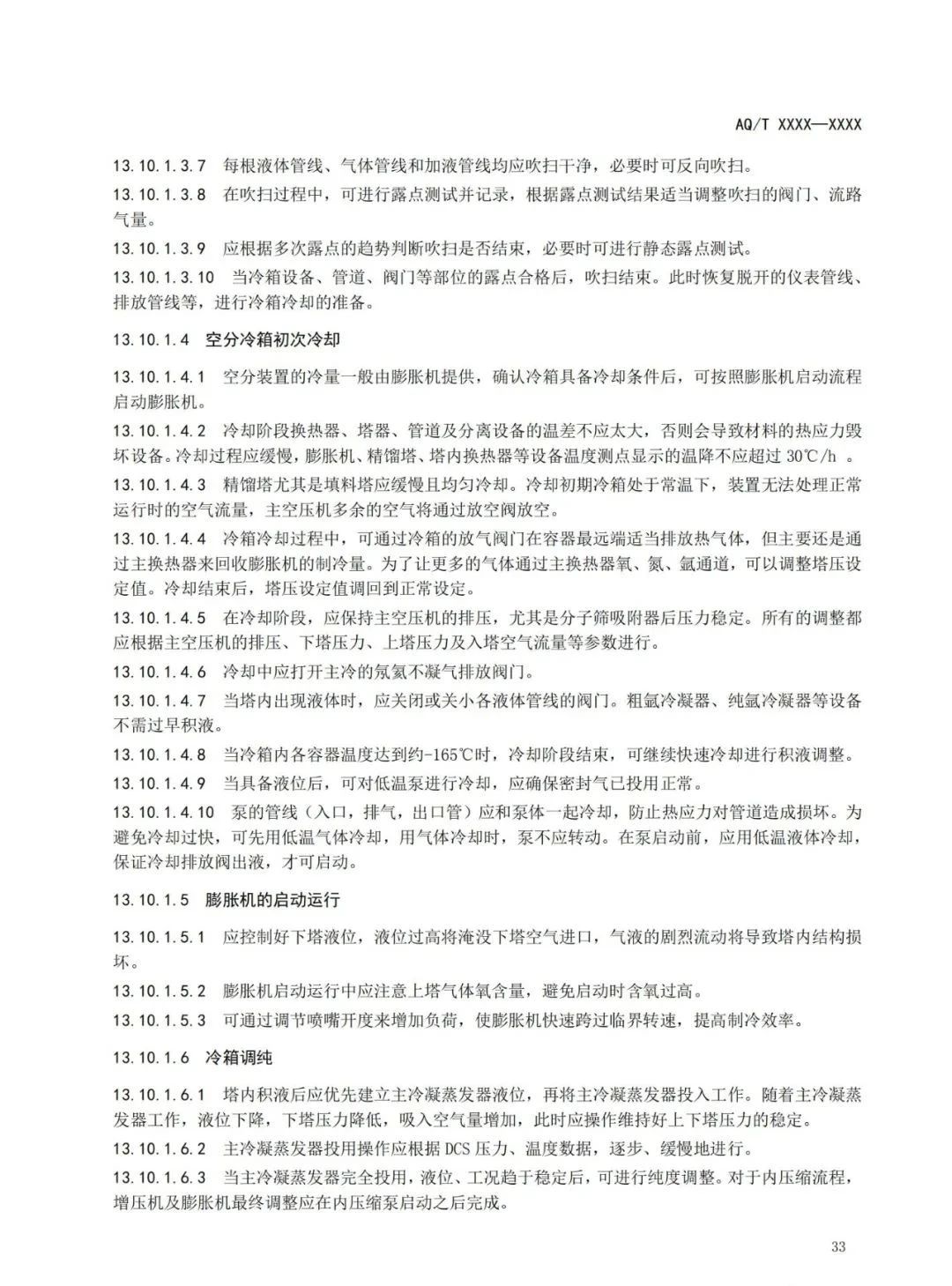 12月15日,國家應急管理部發(fā)布了關(guān)于《深冷空分裝置安全技術(shù)規(guī)范》(征求意見稿)等兩項標準征求意見。此次公開征求意見時間為2020年12月10日至2021年2月10日。本標準規(guī)定了深冷空分裝置的總體布局、吸入空氣質(zhì)量控制、壓縮機、膨脹機、低溫泵、空分冷箱和精餾系統(tǒng)、產(chǎn)品儲運、稀有氣體裝置、控制系統(tǒng)、安全操作運行、人員管理與事故應急處置等內(nèi)容的要求。本標準適用于以冶金、有色、化工、石化、煤化工、電子等領(lǐng)域采用深冷空分裝置制取氧、氮、氬(包含:氦、氖、氪、氙稀有氣體)等空氣產(chǎn)品的企業(yè)。附件:深冷空分裝置安全技術(shù)規(guī)范(征求意見稿)