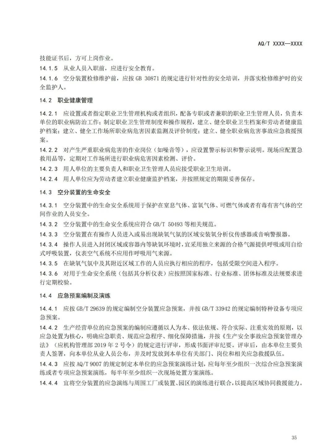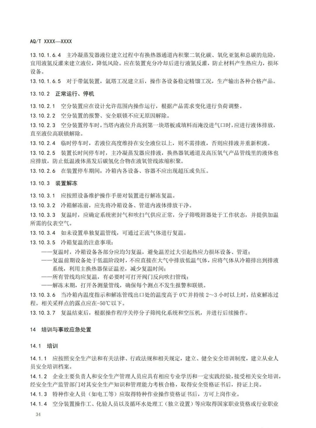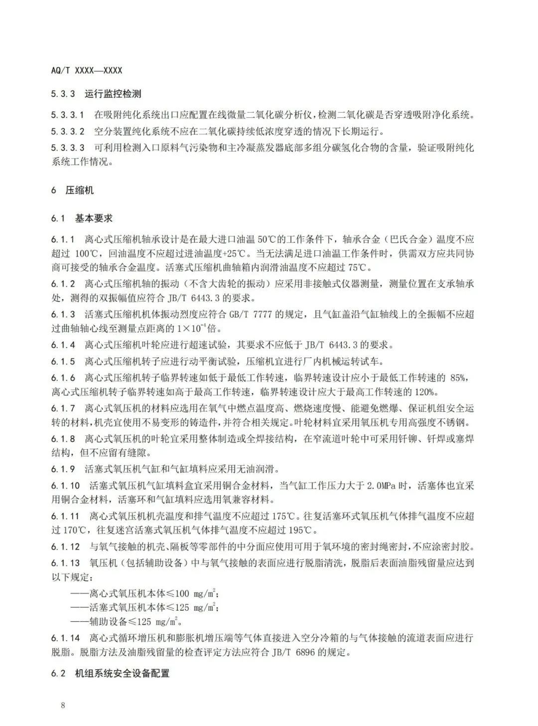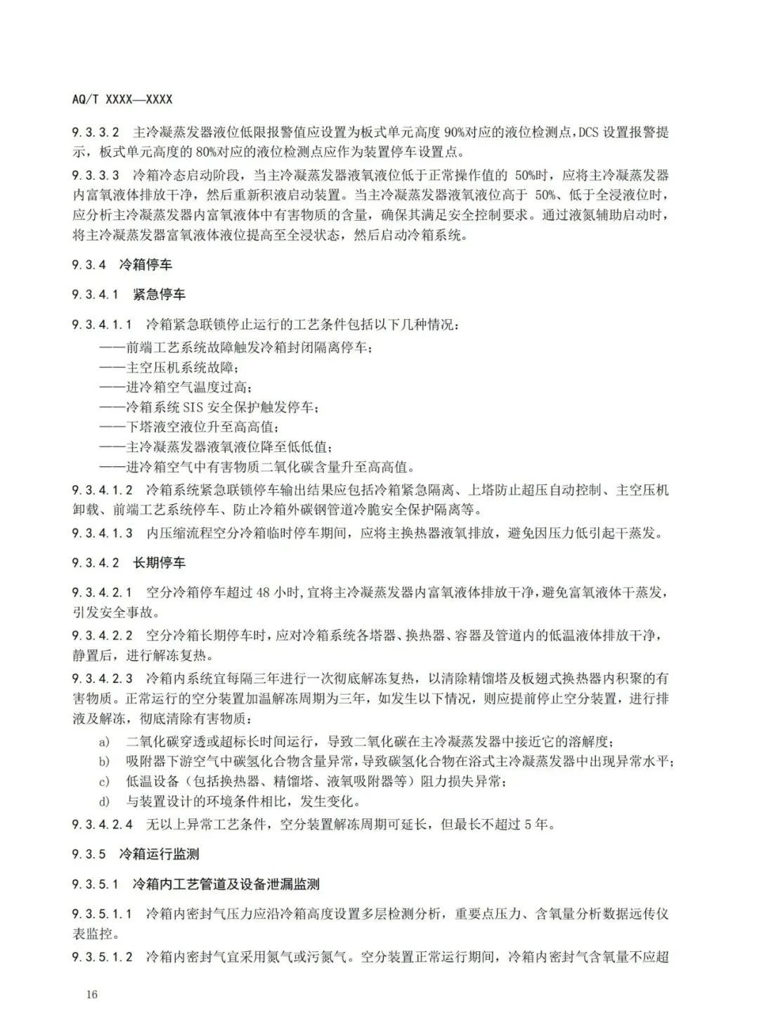 12月15日,國家應急管理部發(fā)布了關(guān)于《深冷空分裝置安全技術(shù)規(guī)范》(征求意見稿)等兩項標準征求意見。此次公開征求意見時間為2020年12月10日至2021年2月10日。本標準規(guī)定了深冷空分裝置的總體布局、吸入空氣質(zhì)量控制、壓縮機、膨脹機、低溫泵、空分冷箱和精餾系統(tǒng)、產(chǎn)品儲運、稀有氣體裝置、控制系統(tǒng)、安全操作運行、人員管理與事故應急處置等內(nèi)容的要求。本標準適用于以冶金、有色、化工、石化、煤化工、電子等領(lǐng)域采用深冷空分裝置制取氧、氮、氬(包含:氦、氖、氪、氙稀有氣體)等空氣產(chǎn)品的企業(yè)。附件:深冷空分裝置安全技術(shù)規(guī)范(征求意見稿)