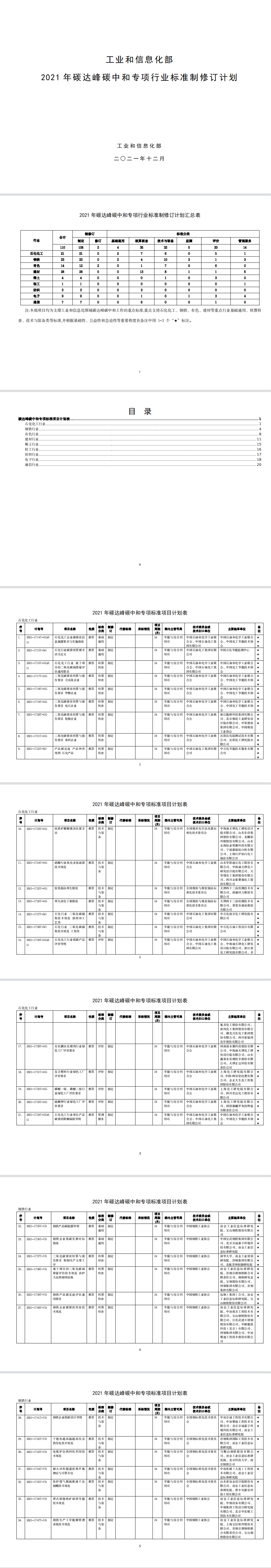 為發(fā)揮標(biāo)準(zhǔn)在推進工業(yè)領(lǐng)域碳達峰碳中和工作的引領(lǐng)和規(guī)范作用,我部編制完成了2021年碳達峰碳中和專項行業(yè)標(biāo)準(zhǔn)制修訂項目計劃。現(xiàn)印發(fā)給你們,請認(rèn)真組織落實。有關(guān)事項通知如下: