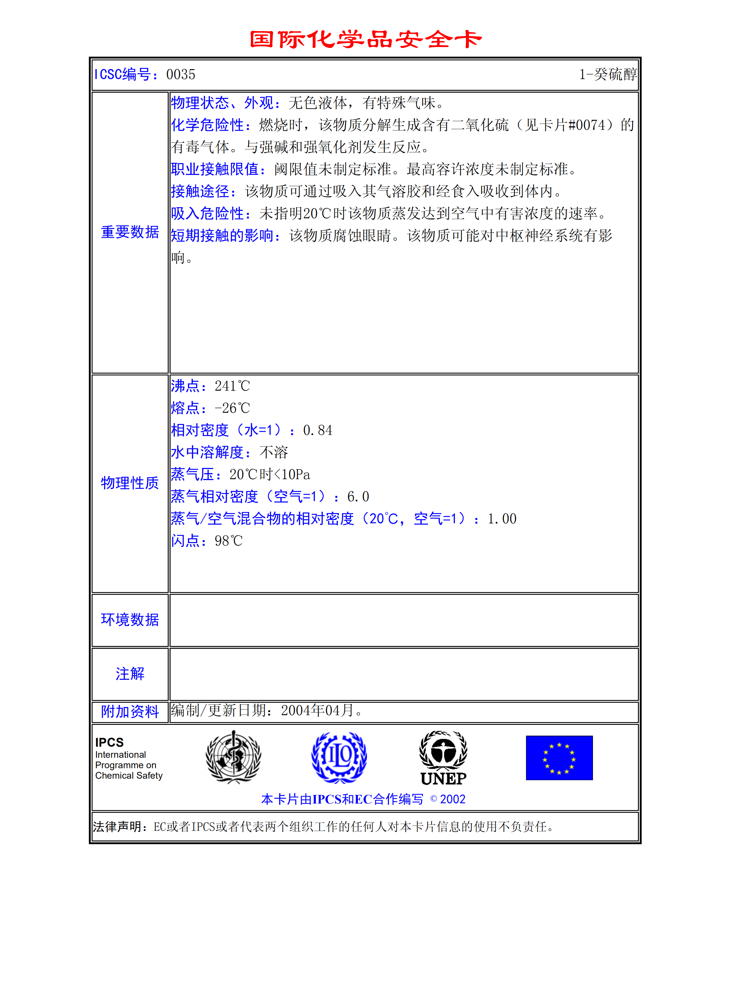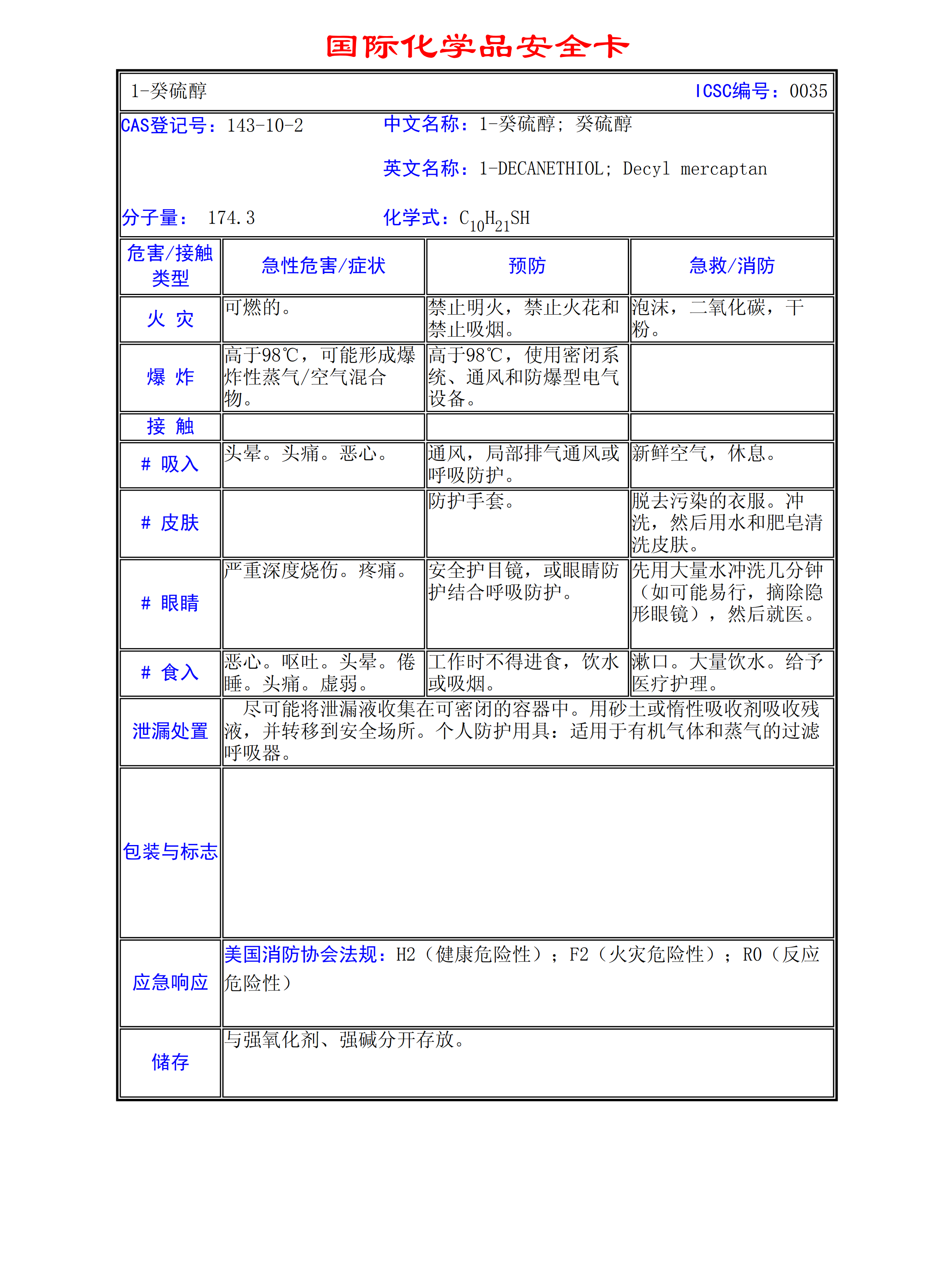 1-癸硫醇MSDS