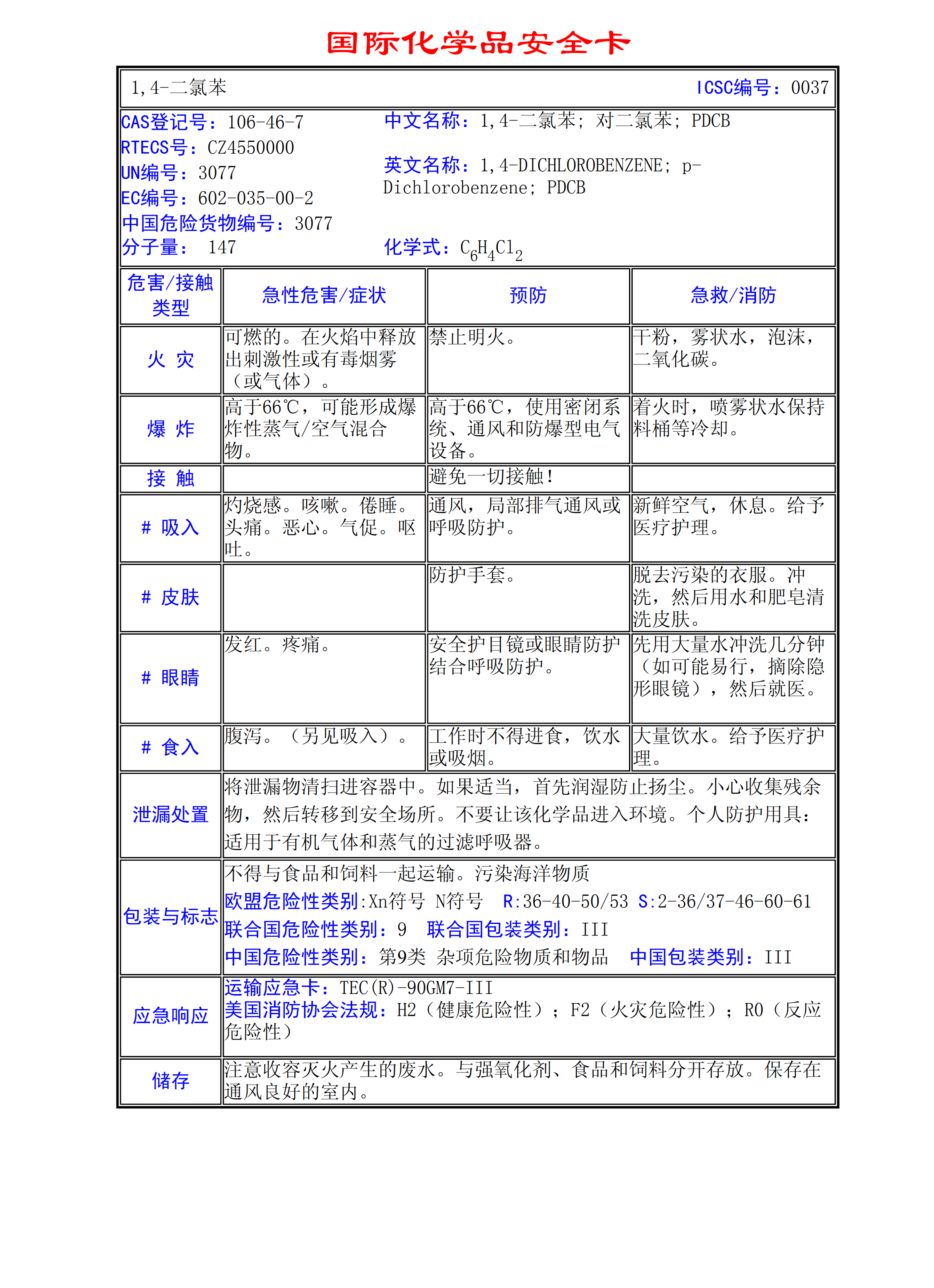 1,4-二氯苯MSDS