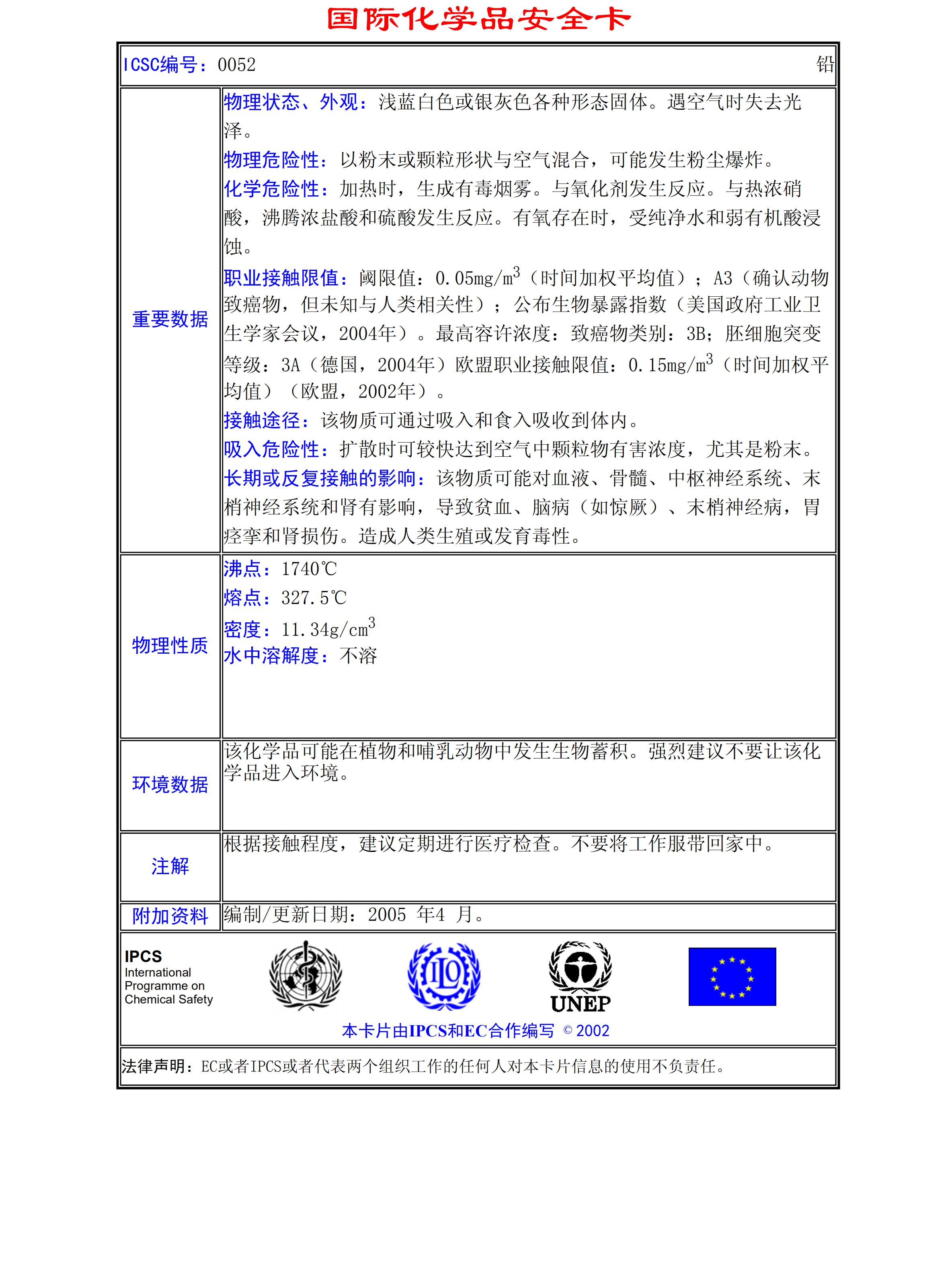 鉛MSDS