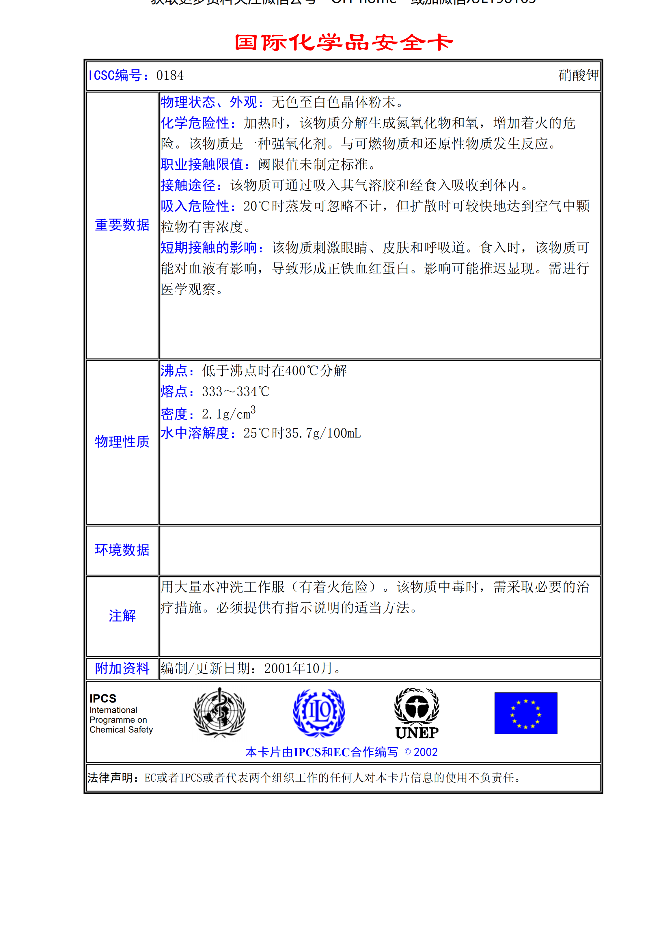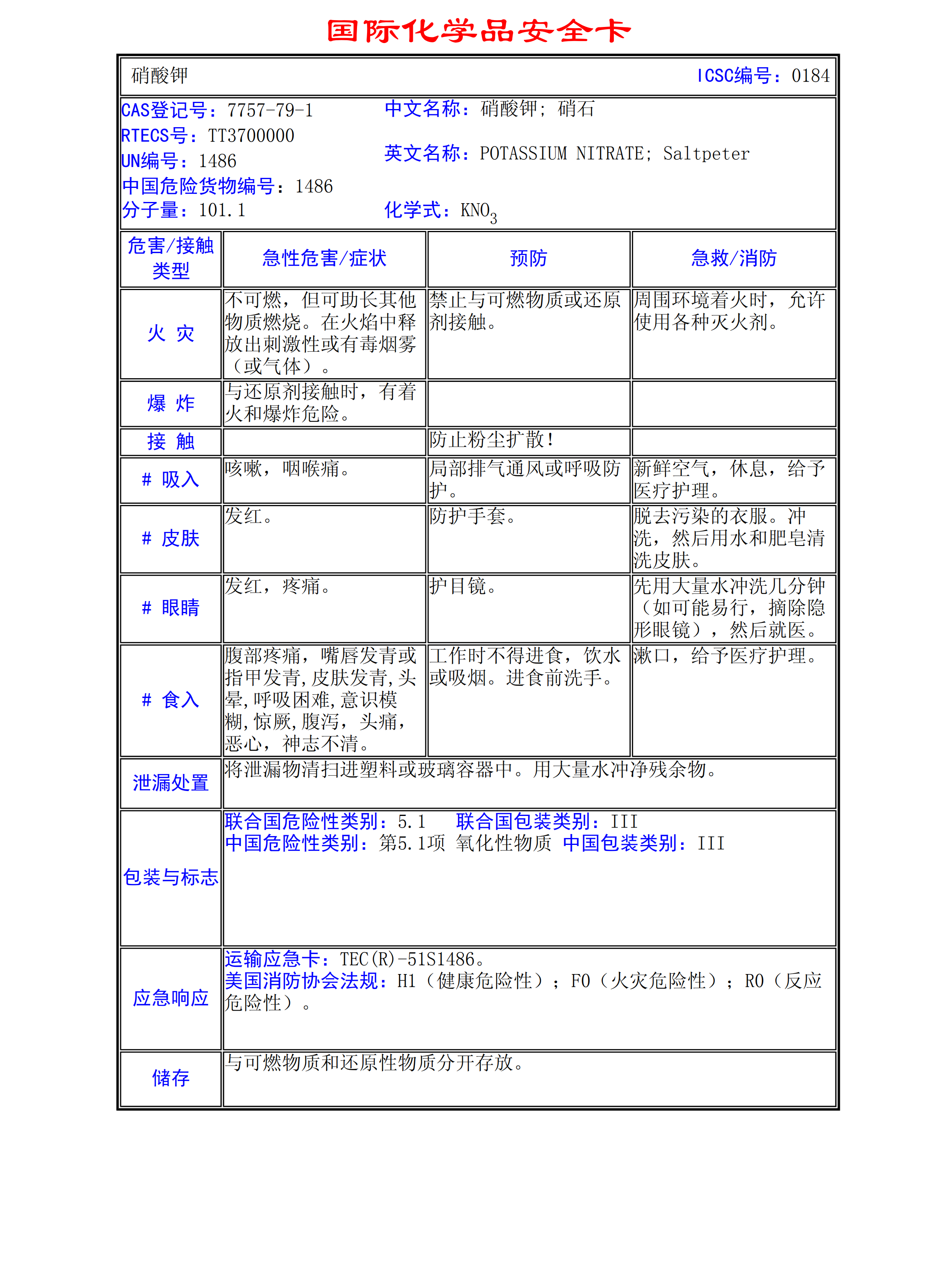 硝酸鉀MSDS