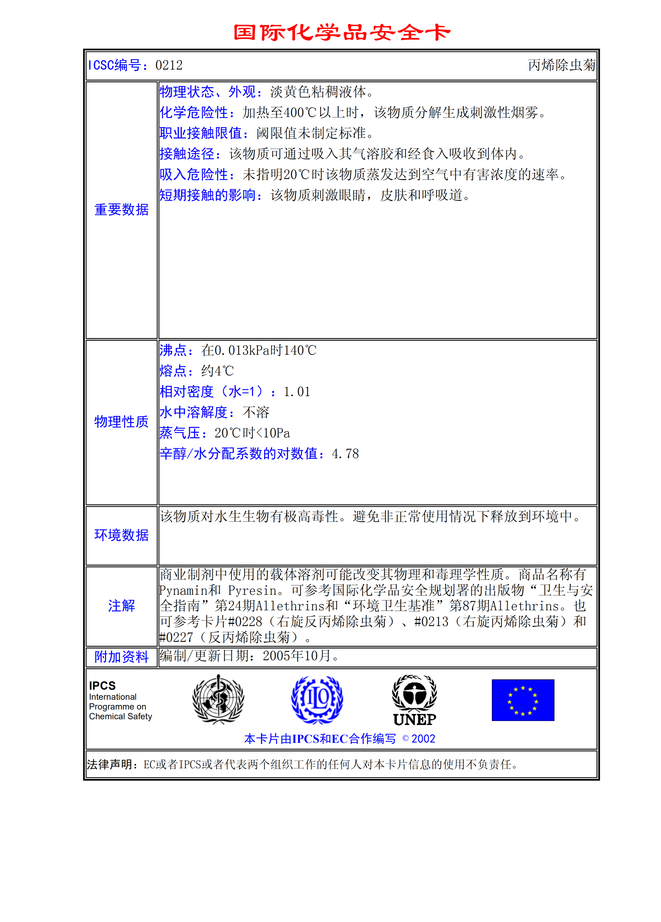 丙烯除蟲菊MSDS