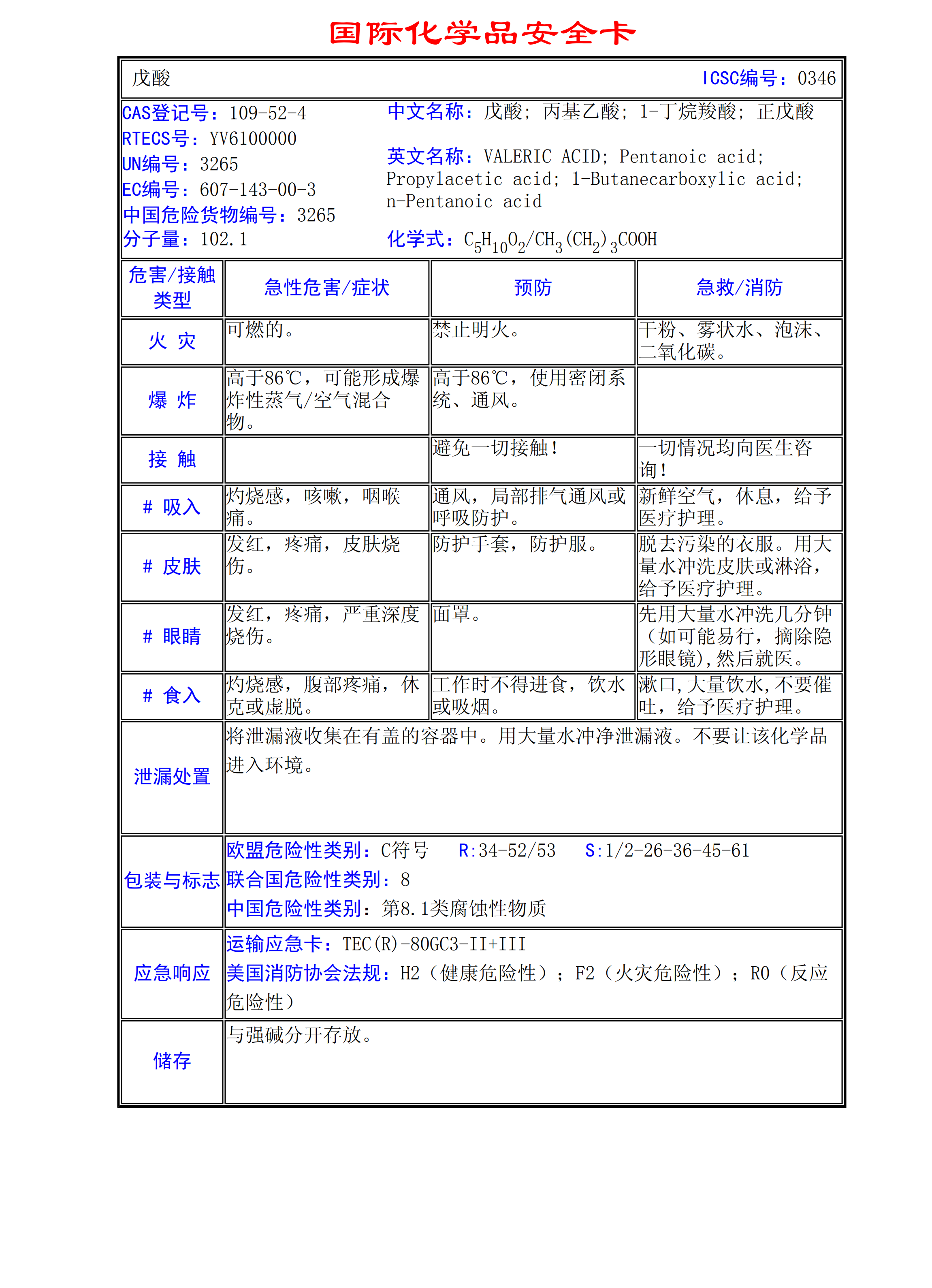 戊酸MSDS