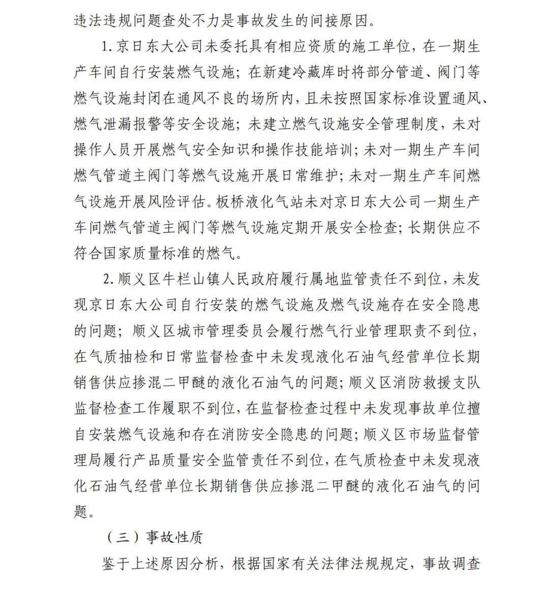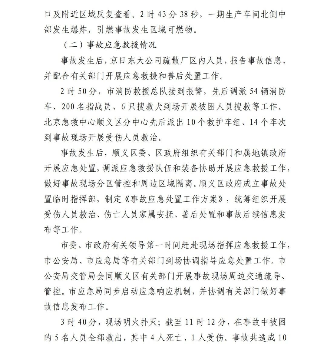 2019年12月3日2時(shí)43分許,北京順義區(qū)牛欄山鎮(zhèn)的(以下簡稱“京日東大公司”)一期生產(chǎn)車間內(nèi)發(fā)生燃?xì)獗ㄊ鹿剩斐?人死亡,10人受傷,直接經(jīng)濟(jì)損失1429.563萬元。
