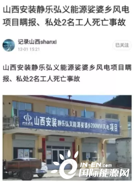 從媒體報(bào)道,山西安裝靜樂(lè)弘義能源娑婆鄉(xiāng)200MW風(fēng)電項(xiàng)目,于2021年1月18日發(fā)生一起2名工人在幸村鄉(xiāng)標(biāo)段作業(yè)途中傷亡事故。該項(xiàng)目部并未向上級(jí)政府部門(mén)上報(bào),私自隱瞞處理此事。