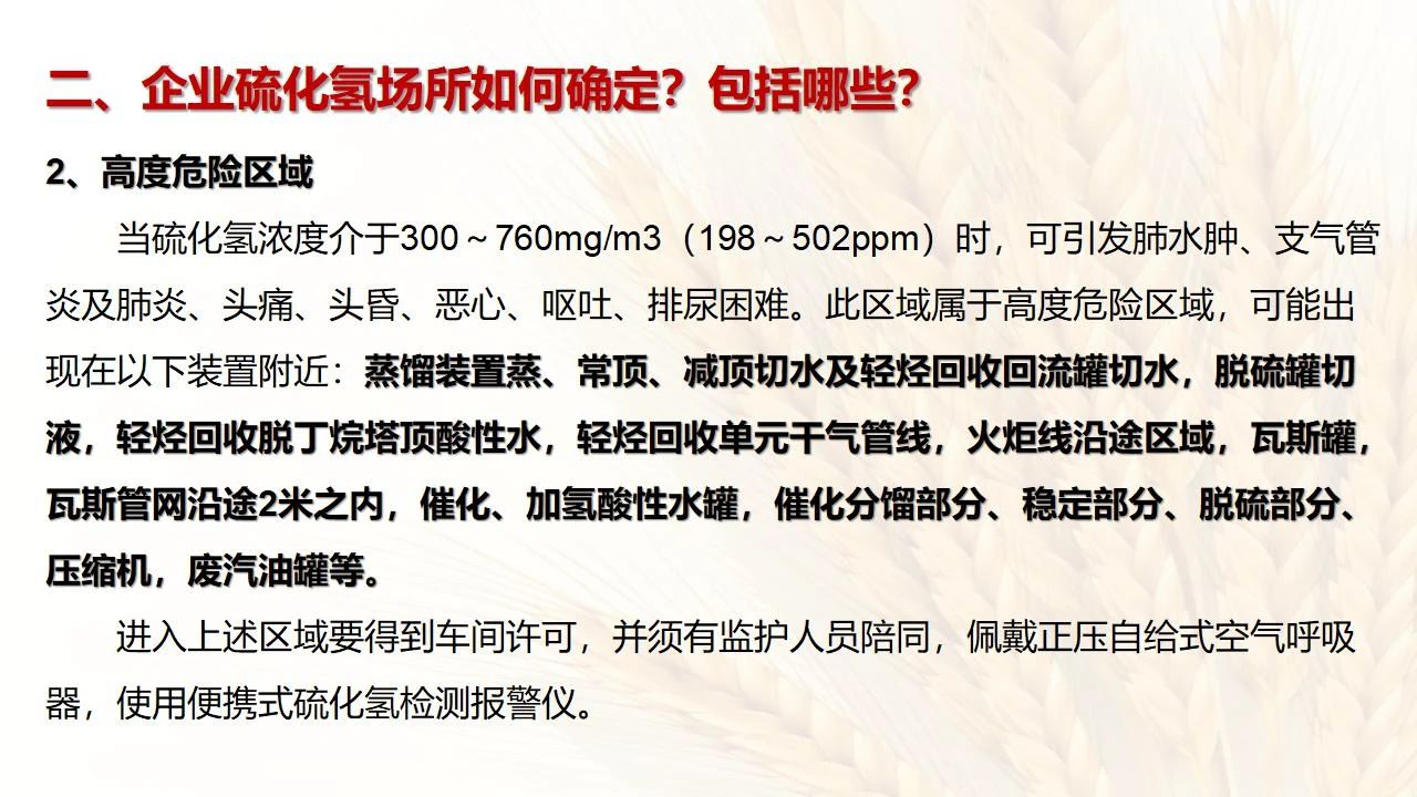 1.產(chǎn)生硫化氫的生產(chǎn)設(shè)備應(yīng)盡量密閉,并設(shè)置自動報警裝置(不能根據(jù)臭味來判斷危險場所硫化氫的濃度,硫化氫達到一定濃度時會導(dǎo)致嗅覺麻痹)。