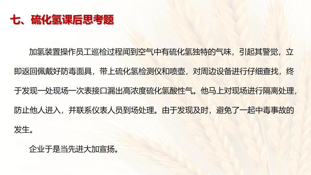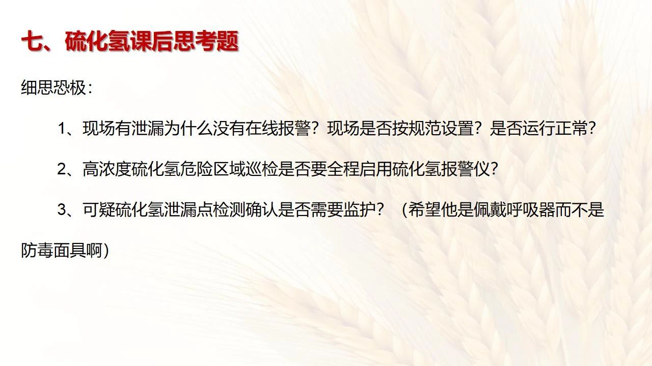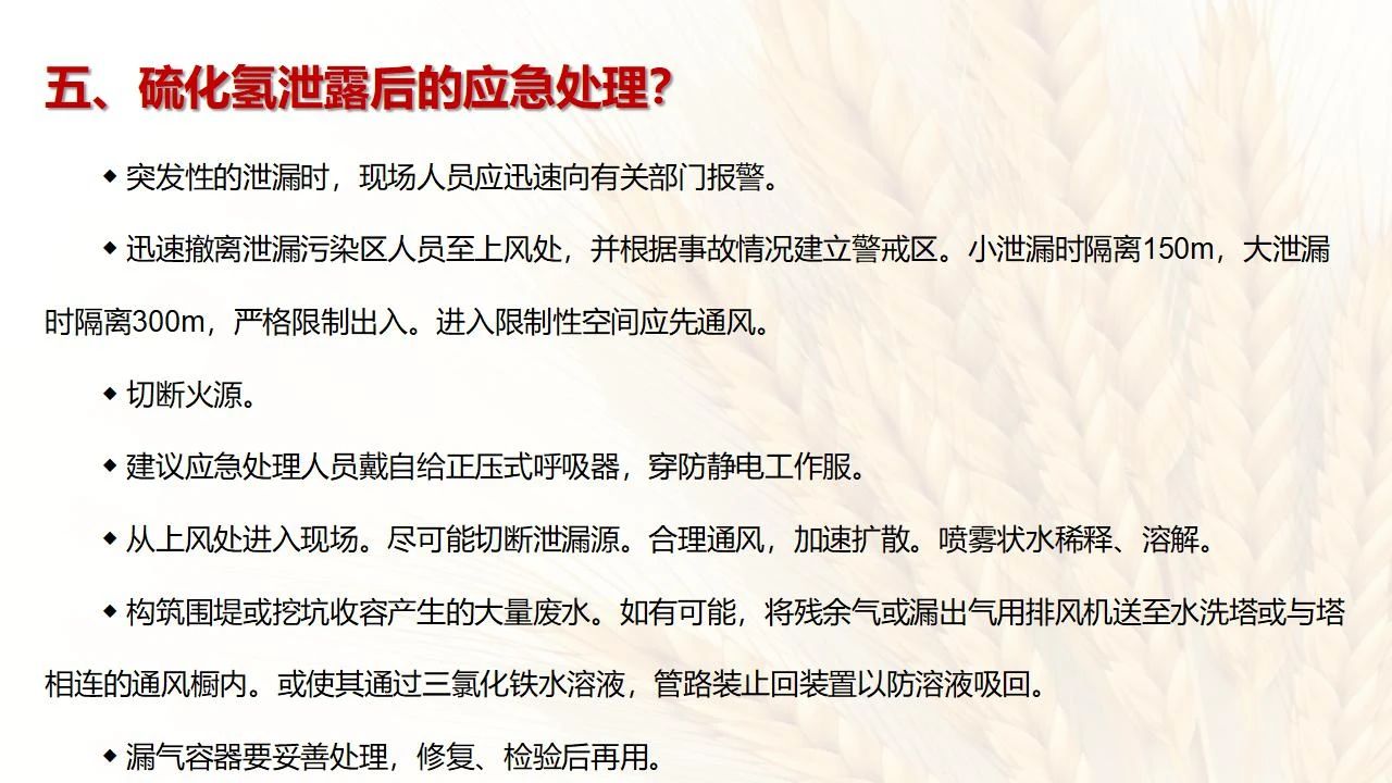 (6)發(fā)現(xiàn)硫化氫濃度高,要先報告,采取一定防護措施后,才能進入現(xiàn)場檢查和處理。
