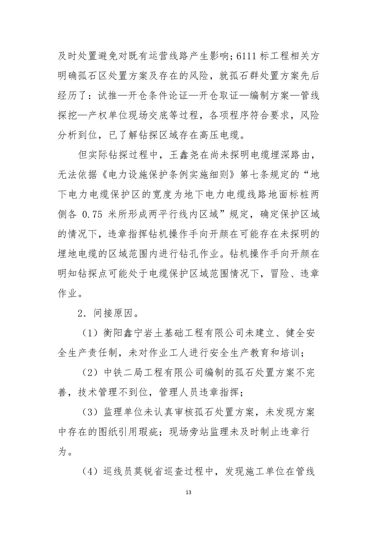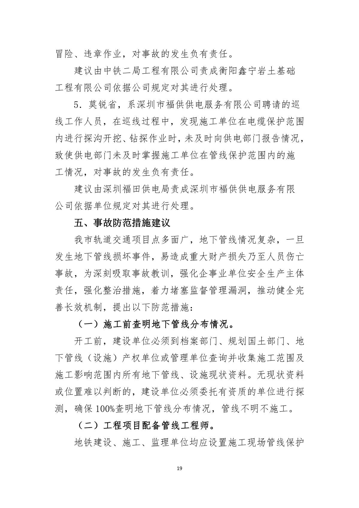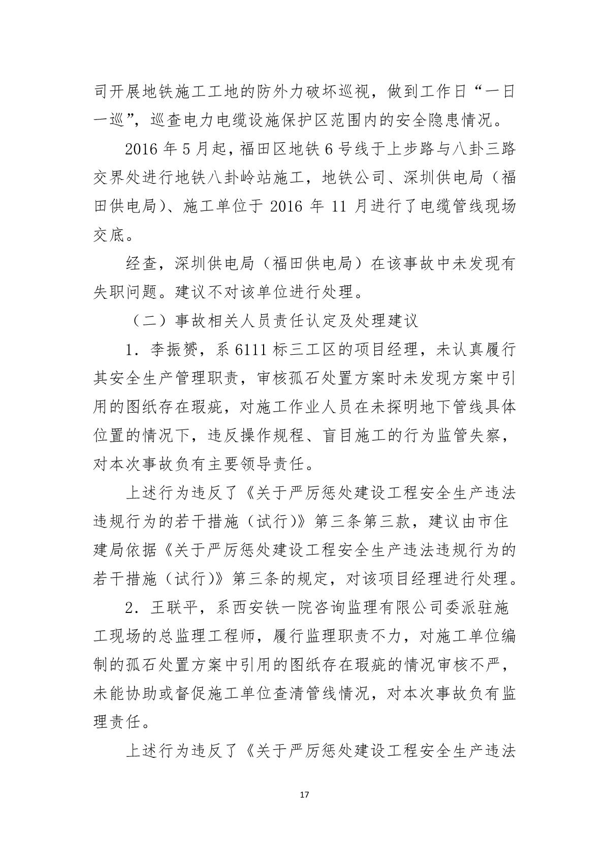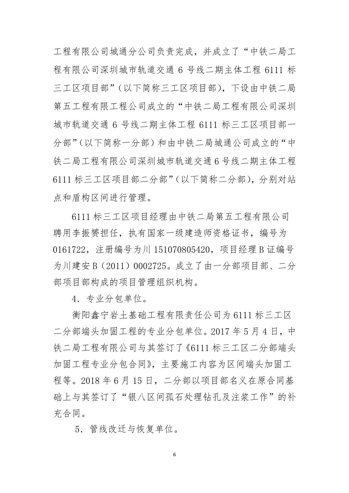 福田區(qū)人民政府關(guān)于深圳市城市軌道交通6號(hào)線二期主體工程6111標(biāo)“7.05”10kv電力電纜受損事故調(diào)查報(bào)告