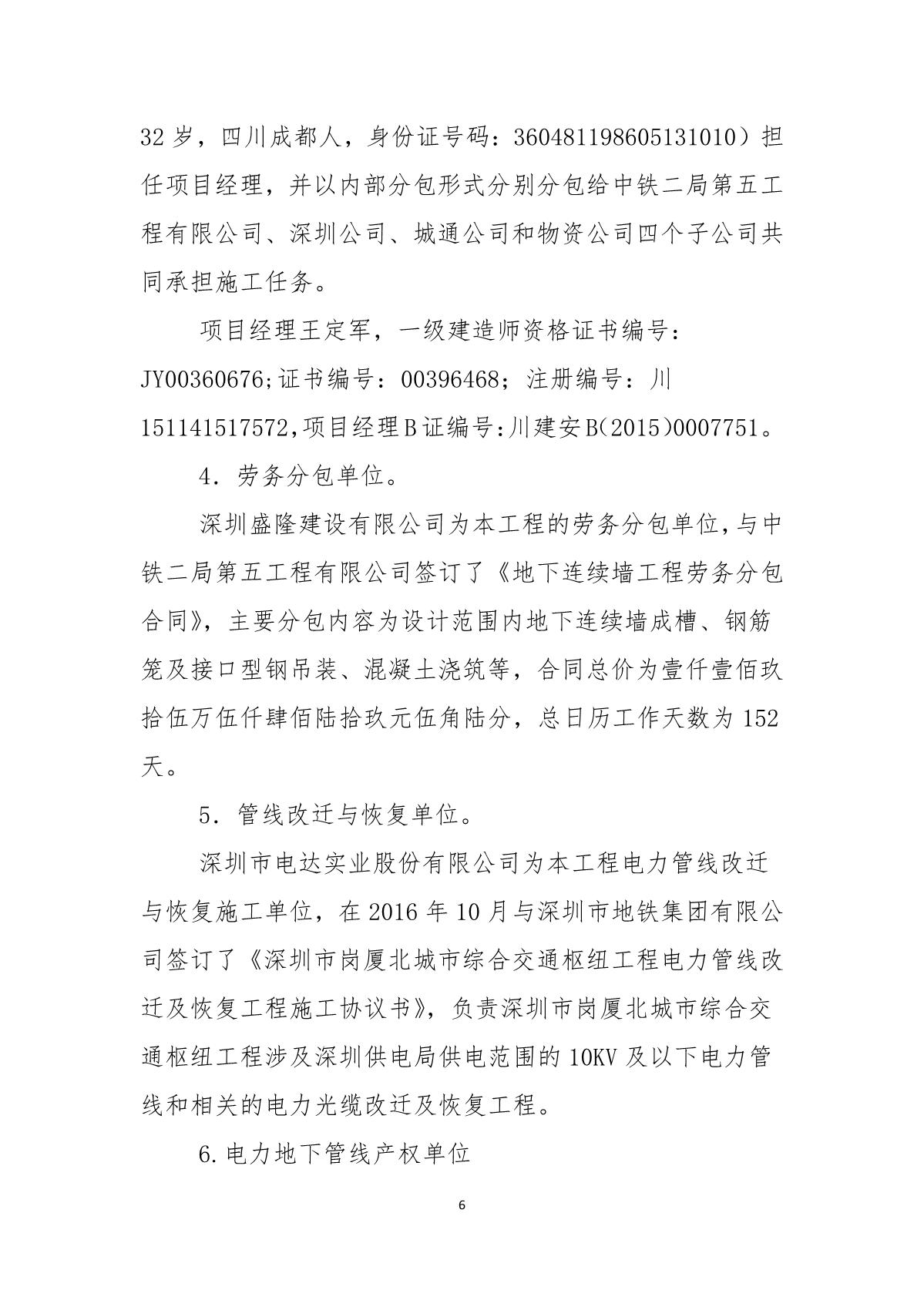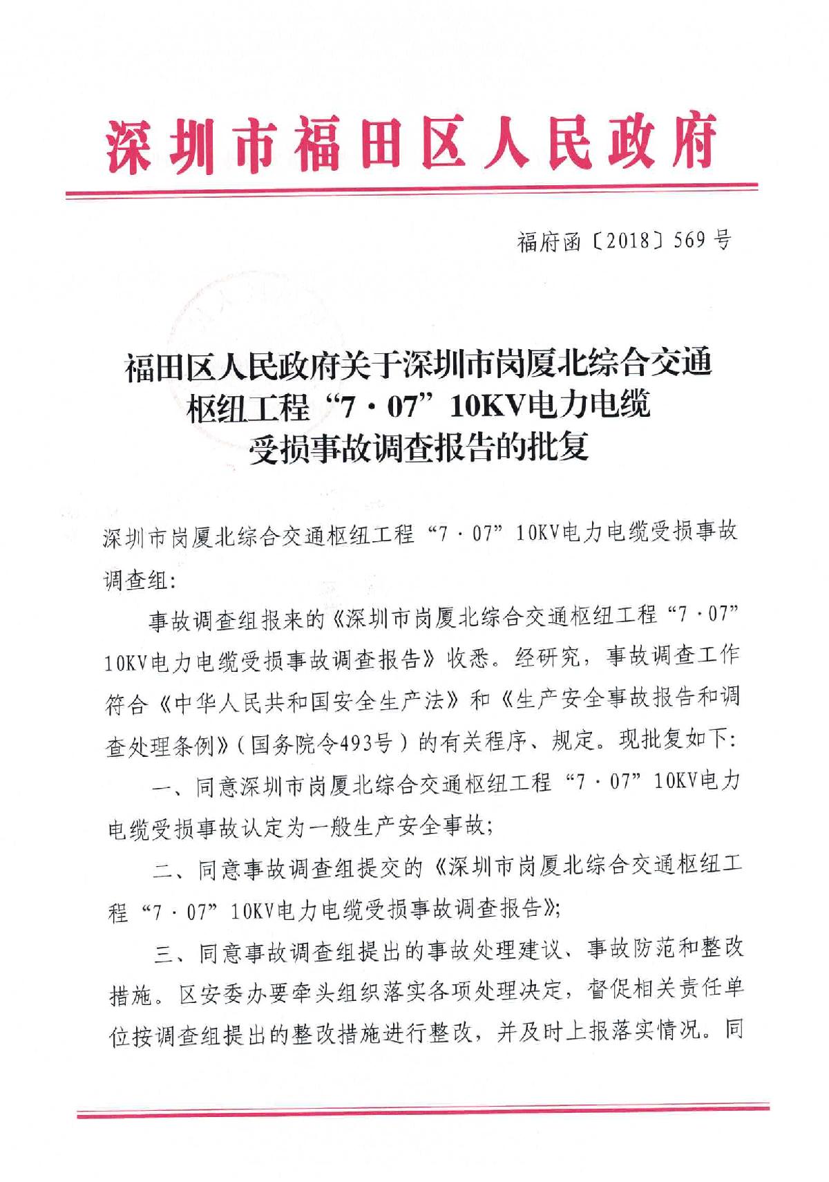福田區(qū)人民政府關(guān)于深圳市城市軌道交通6號線二期主體工程6111標(biāo)“7.05”10kv電力電纜受損事故調(diào)查報(bào)告