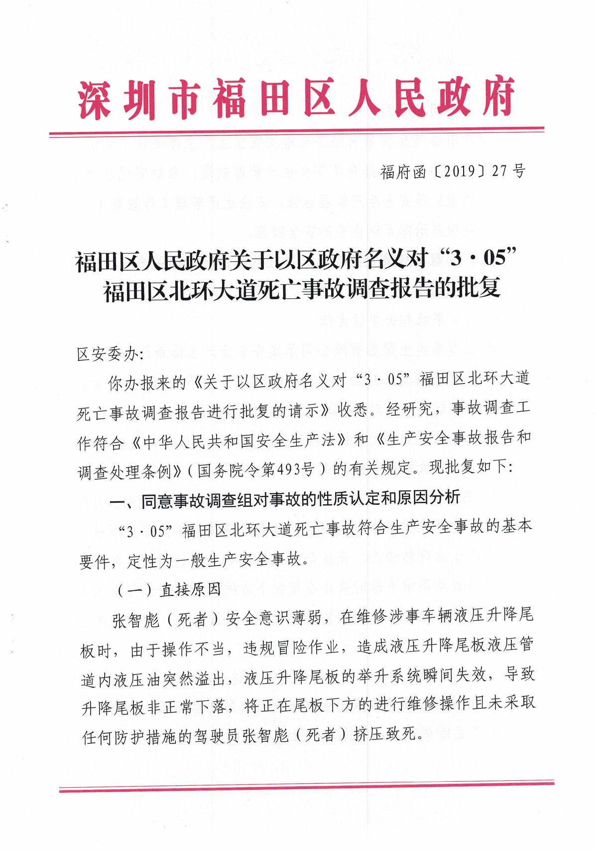 “3.05”福田區(qū)北環(huán)大道死亡事故調(diào)查報(bào)告