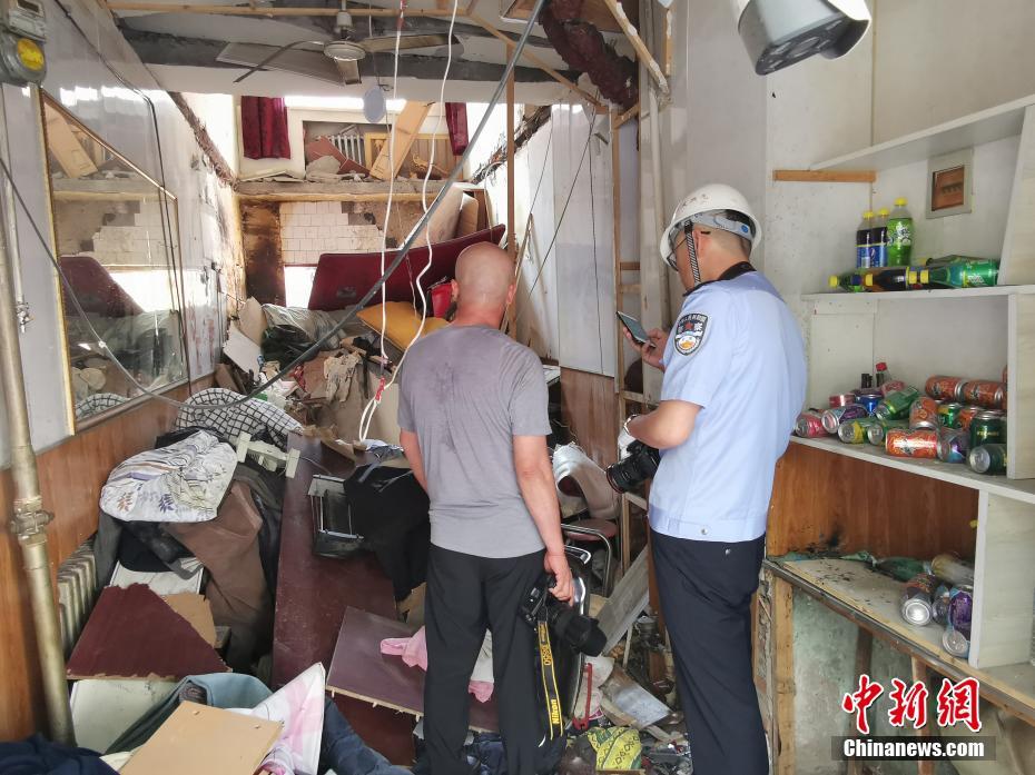 8月5日早8時左右,位于哈爾濱市道里區(qū)安順街的一家餐館發(fā)生疑似燃氣爆炸,現(xiàn)場一片狼藉,爆炸震碎二樓樓板,一老人墜落受傷,餐館老板娘受傷嚴重,目前兩人已被送往醫(yī)院就醫(yī)。爆炸造成路邊多輛車輛受損,附近居民樓玻璃被沖擊波震碎。中新社記者 范英杰 攝