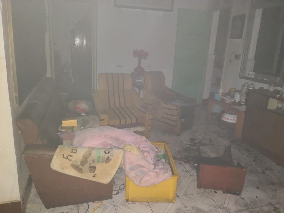 初步檢查發(fā)現(xiàn),取暖器旁的圍布燒著引發(fā)火災(zāi)。萬幸的是,因救援及時,沒有引燃客廳的其它物品,兩位老人有驚無險。