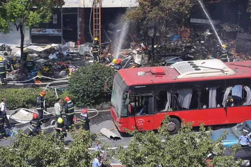 爆炸的威力連對(duì)面的非機(jī)動(dòng)車(chē)道也有玻璃渣。目前對(duì)交通形成嚴(yán)重影響,事故現(xiàn)場(chǎng)已封道,通往古墩路的車(chē)輛請(qǐng)避行,現(xiàn)場(chǎng)已經(jīng)開(kāi)展滅火和傷員轉(zhuǎn)移工作。